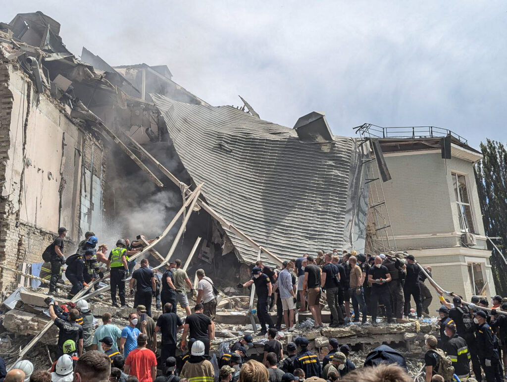 Последствия российской ракетной атаки по Киеву, 8 июля 2024 года. Фото: Алексей Арунян, Ґрати